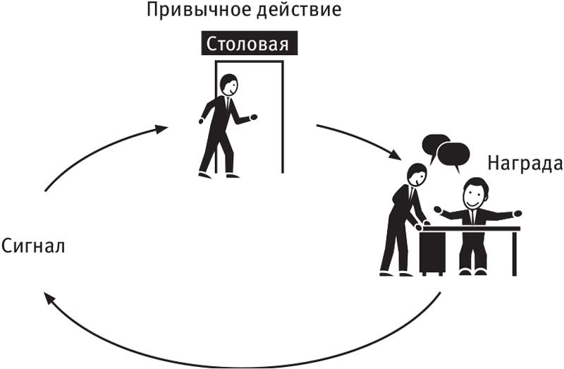 Далее предстоит ответить на несколько менее очевидных вопросов. Каков сигнал для этого привычного действия? Голод? Скука? Низкий уровень сахара в крови? Потребность сделать перерыв, прежде чем перейти к другой задаче?