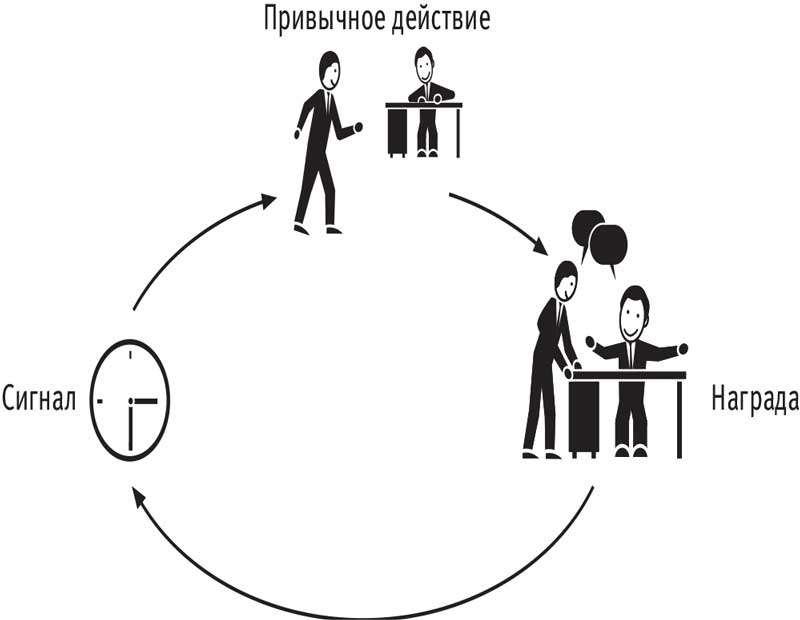 Исследователи из Массачусетского технологического института, о которых шла речь в главе 1, установили, что в основе каждой привычки лежит простая неврологическая петля, состоящая из трех частей: сигнала, привычного действия и награды.