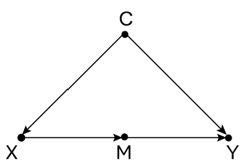 Тем не менее цель моего примера была не в том, чтобы предложить новый механизм для воздействия курения на организм, а в том, чтобы продемонстрировать, как математика в определенной ситуации способна устранить воздействие конфаундеров, даже если данных по самому конфаундеру нет. Подобную ситуацию легко распознать. В ситуациях, когда каузальное воздействие X на Y осложняется одним набором переменных (С) и опосредуется другим (М) (рис. 42) и, более того, опосредующие переменные защищены, как щитом, от воздействий C, вы всегда можете оценить воздействие X, пользуясь наблюдаемыми данными. Узнав об этом факте, ученым было бы разумно, столкнувшись с неустранимыми конфаундерами, искать защищенные медиаторы. Как говорил Луи Пастер, «удача сопутствует подготовленному уму».