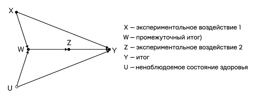 Чтобы не оставлять читателя под впечатлением, что do-исчисление хорошо только для теории и для решения головоломок на досуге, я закончу эту секцию практической задачей, которую поставили недавно два ведущих статистика Нэнни Вермут и Дэвид Кокс. Она показывает, как дружеская подсказка «Попробуй do-исчисление» может помочь экспертам в области статистики решать сложнейшие практические задачи.