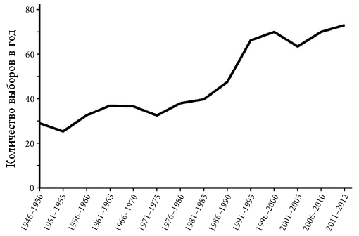 Источник: статистика «Национальных выборов в демократиях и автократиях» (NELDA)