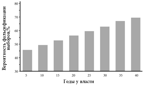 Приложение 8. Вероятность фальсификации выборов в зависимости от срока нахождения текущей партии у власти (регрессионный анализ за 1989–2012 гг.)