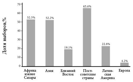 Приложение 14. Доля выборов с подкупом избирателей, по регионам, 2012–2016 гг.