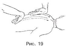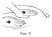 Растирание можно производить и четырьмя выпрямленными пальцами. В этом случае они не будут касаться кожи при движении больших пальцев вперед.