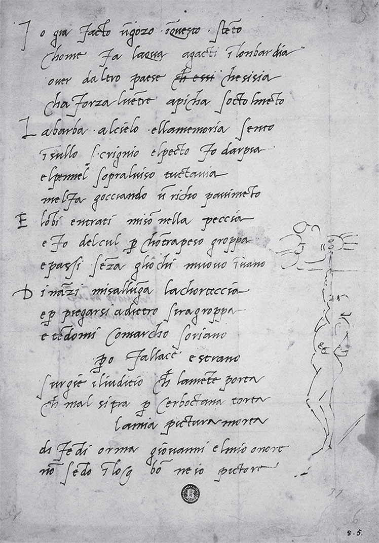 Рукопись шутливого стихотворения Микеланджело, посвященного процессу росписи плафона Сикстинской капеллы