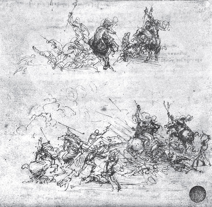 Подготовительный рисунок Леонардо к фреске «Битва при Ангиари»