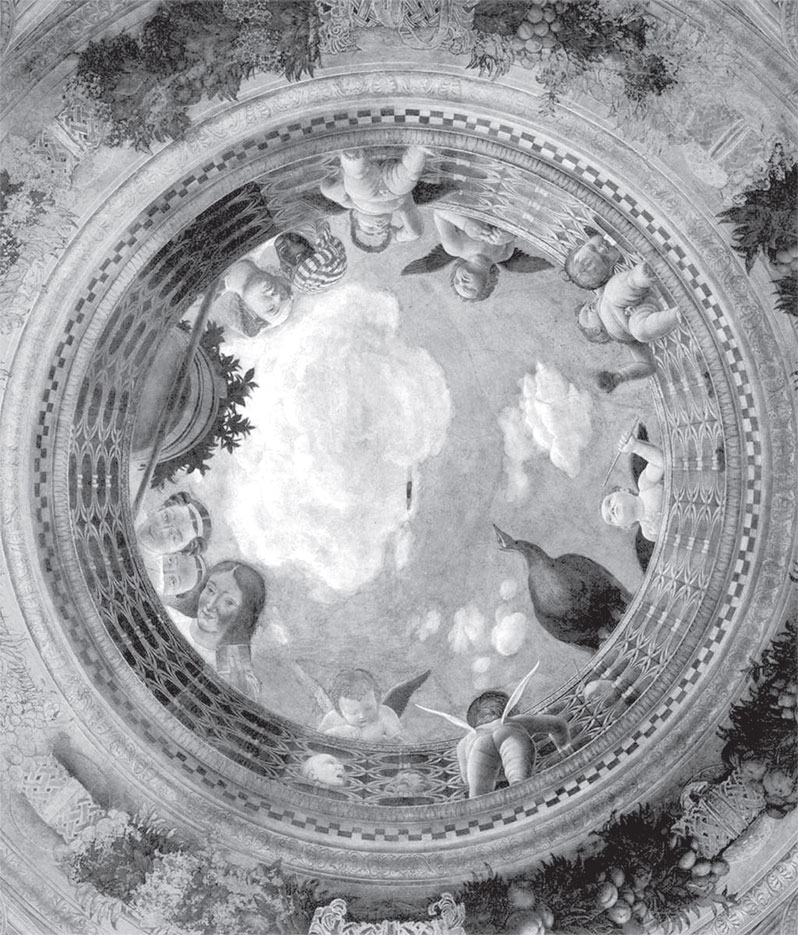 Плафонная фреска Андреа Мантеньи в Камера дельи Спози в герцогском дворце Мантуи; завершена в 1474 г.