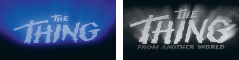 Заставки фильмов Джона Карпентера «Нечто», 1982 год и Кристиана Найби «Нечто из иного мира», 1951 год