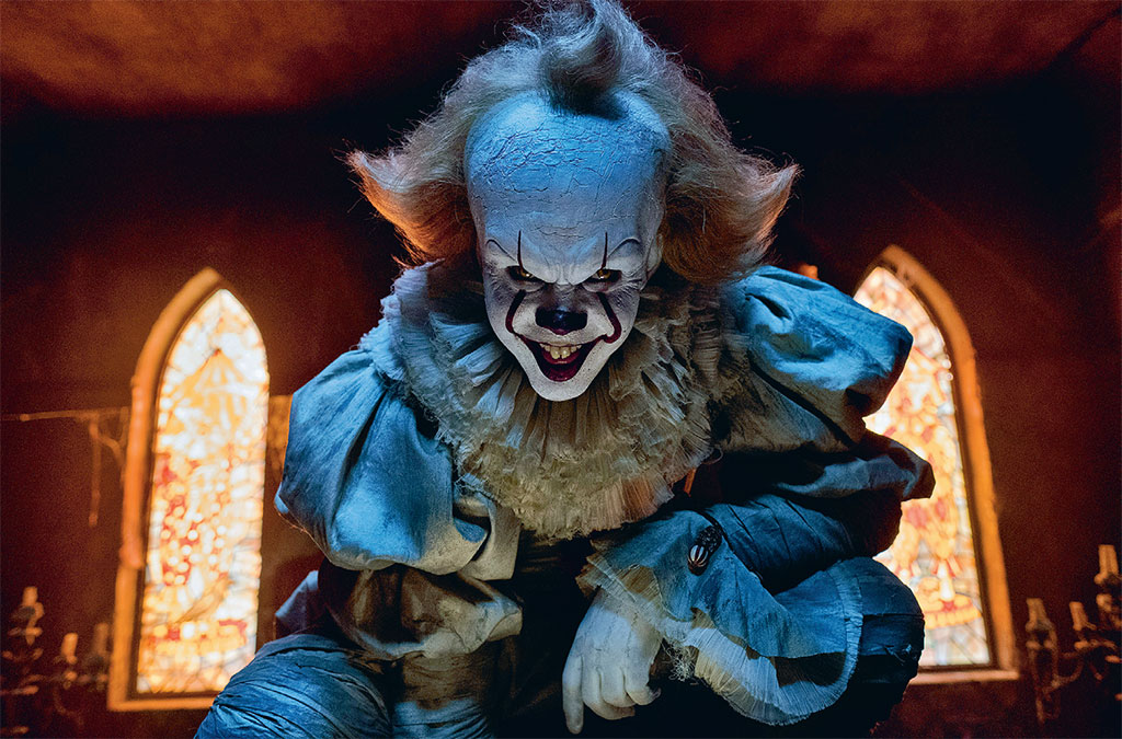Билл Скарсгард в роли Пеннивайза в фильме «Оно», реж. Энди Мускетти, Warner Bros. Pictures, 2017 год