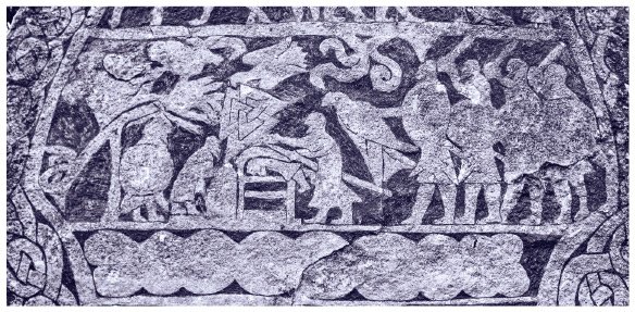 Жертвоприношение, изображение на рисованном камне I, фрагмент, VIII–IX вв., Stora Hammars, Готланд, Швеция.