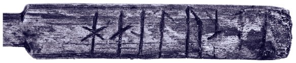 Бирка с рунической надписью, дерево, 1160–1170-е гг., Новгород.