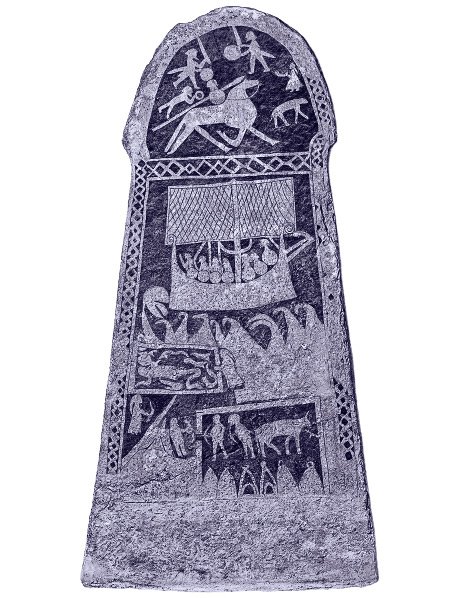 Въезд в Вальхаллу и сражение эйнхериев, изображение на рисованном камне I, Hunninge, VIII–IX вв., остров Готланд, Швеция.
