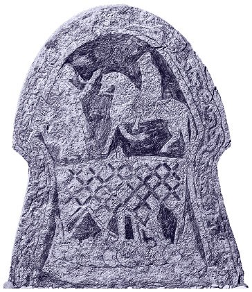 Валькирия встречает павшего воина, изображение на рисованном камне, Bro, VIII — Х вв. Готланд, Швеция.