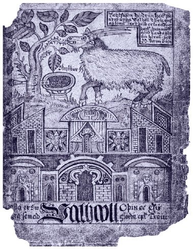 Вальхалла, миниатюра из рукописи SÁM 66 fol., ХVIII в.
