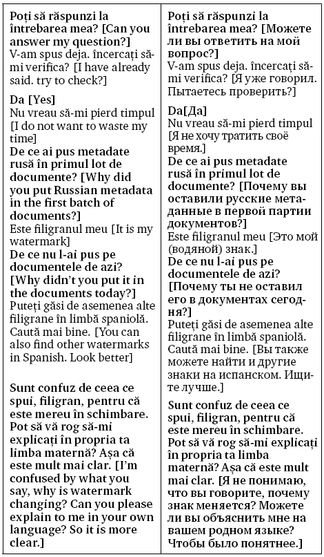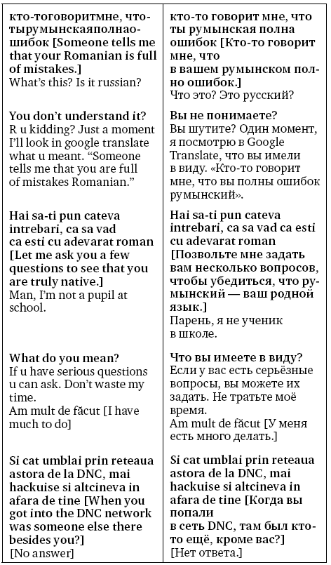 В-третьих, его языковые особенности, речевые погрешности и ошибки в употреблении русских и румынских слов указывают на то, что Гуччифер 2.0., скорее всего, является молдаванином (выходцем из Молдавии – в настоящее время – Республика Молдова), поскольку молдаване действительно не любят русских после того, как благодаря русскому войску, действовавшему в Бессарабии, Молдавия потеряла независимость. Поэтому хакер говорит о том, что он не любит русских, и категорически отрицает свою принадлежность к ним.