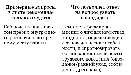 Горелова И.В. предлагает использовать лист рекомендательного аудита «как инструмент биографического метода отбора персонала, как дополнительный штрих к профилю кандидата со стороны бывшего работодателя и как симбиоз положений аудита, трудового законодательства и науки управления персоналом» [14, c. 30]. Под листом рекомендательного аудита понимается «перечень характеристик соискателя, необходимых для занятия вакантной должности, идентифицированных работодателем по прежнему месту работы» [Там же, c. 30].