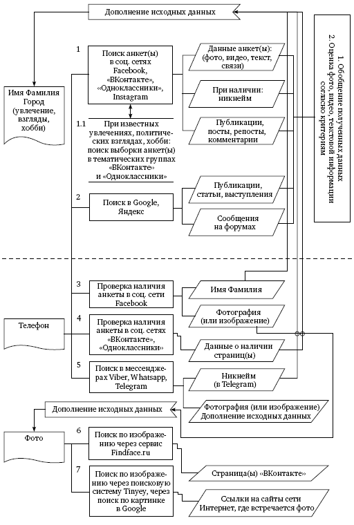 Приведём на рисунке 4 основные алгоритмы поиска информации о человеке в сети Интернет (включая социальные сети).