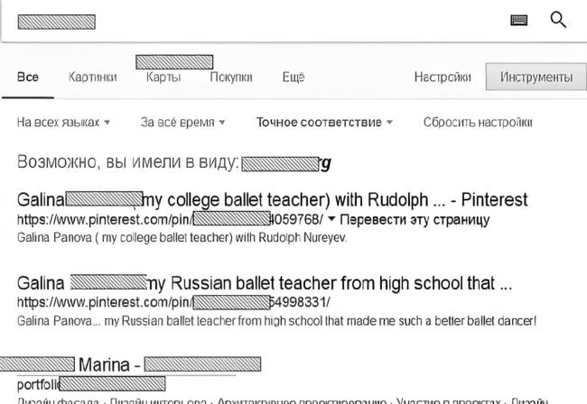 2.1. Идентификационная задача № 1. Поиск данных о человеке на основе известных формальных сведений о нём на примере одного объекта исследования под именем Марина