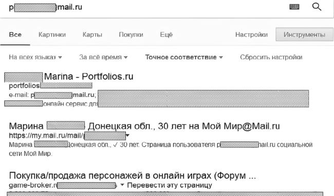 На следующем этапе произведём поиск по email-адресу (рисунок 9). В результате поиска находим страницу на «Мой Мир» (mail.ru), откуда получаем возраст 30 лет и регион – Донецкая область. Также находим сообщение форума (игрового) от 2011 года о продаже игрового персонажа с указанием искомой почты, а также icq-номера.