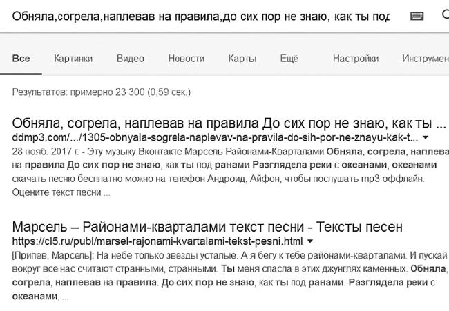 • чужой текст (рисунки 42–43), произведён прямой поиск по тексту,