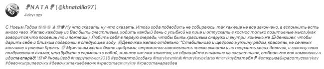 Анализ поздравления (авторский стиль сохранён): «ну что сказать, ну что сказать. итоги года подводить не собираюсь, так как еще не все закончено, а вспомнить есть много чего, желаю каждому из вас быть счастливым, ходить каждый день с улыбкой на лице и отпускать в космос только позитивные мысли(как говорится, что посеешь то и пожнешь), любить себя в первую очередь, чтобы быть красивым снаружи и внутри, конечно же денюшек, чтобы дарить себе и близким подарочки в следующем году, девочкам желаю отдельно стабильного и щедрого мужчину рядом, красоты, не сеченых кончиков и ровные бровки, а мужчинам желаю быть щедрыми, стремится завоевывать новые высоты и не огорчать своих девочек, и закончу свое поздравление сказав, что будьте в гармонии с собой, живите как вам хочется, не обращайте внимание на завистников, отбросьте все комплексы и идите вперёд!!» показал: