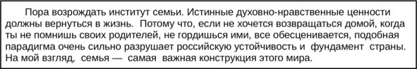 Мне очень хочется показать людям, что такое настоящая семья. Как можно приходить в этот мир, как должны люди общаться в семье. Семья – самый большой тренинг в жизни, и это огромный труд. Нет ничего сложнее развития этого пространства. Имея 40-летний опыт семейного стажа, я, глядя на современные отношения мужчины и женщины, с прискорбием замечаю следующее: