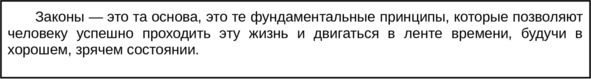 Итак, перед нами две части программы «Прозрение души». Первая, прошлая – это психотравма, и ее мы убираем на тренинге. Вторая – это законы. Про них я тоже очень подробно рассказываю на программе. Можно было бы этому посвятить какую-то часть книги, но описать многомерность их действия без живых примеров будет крайне сложно, и настолько много тонких нюансов в их работе, что мне не хотелось бы подпитывать ваш очень хитрый и острый ум, потому что, прочитав эти законы, он найдет способы объяснить, почему это именно у него не работает, и почему, собственно говоря, методика не будет эффективна. Прости меня, дорогой читатель, за эту интригу и недоговоренность, но описать истинные знания словами на сегодня у меня не получится без твоего живого присутствия.