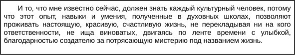 Но у нас с вами есть очень умный и критичный ум, который является хорошим слугой, но плохим хозяином. Он очень часто перехватывает божественную информацию, говоря, что так не может быть – слишком просто, слишком легко. Должно быть все гораздо сложнее, гораздо труднее. Бог транслирует нам кратчайшую дорогу и создает не то что легкий путь, а оптимальный для прохождения наших жизненных задач. Поэтому шестая грань предназначения – это вера в Создателя и глубочайшее исследование его законов, то, о чем мы с вами кратко писали в прошлой главе. Нарушение этих законов приводит к слепоте человека и человечества в прямом и переносном смысле. «Если слепой ведет слепого, то оба упадут в яму», – написано в мудрой книге. Поэтому я желаю нам всем прозрения, зоркости и движения в сторону целостности, соединения разрозненных частей. Начиная с шестого уровня, становится понятно, как прожить долго, богато, счастливо и в здоровом теле. На шестом уровне приходит мудрость. Когда я согласую свои действия с Создателем, то все происходит, и очень хорошо.