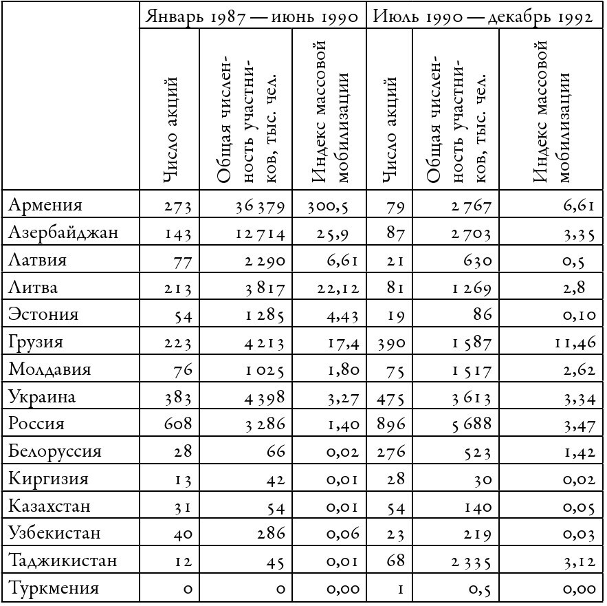 Таблица 4. Протестная мобилизация в республиках СССР в 1987–1992 годах