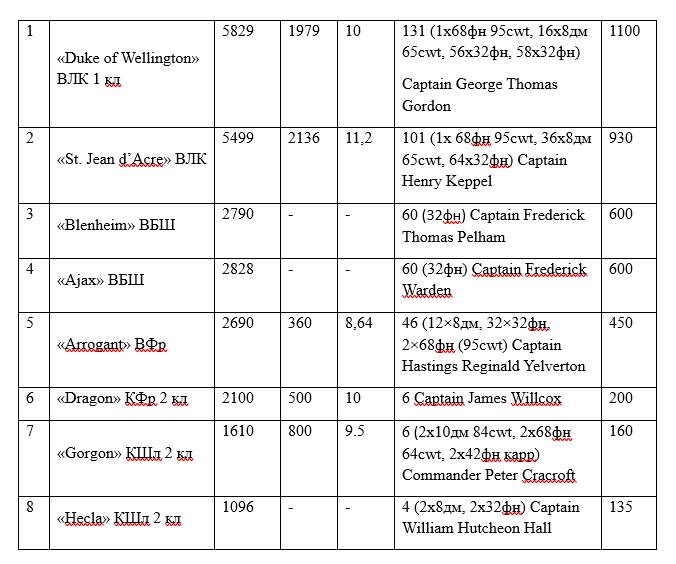 Таблица паровых кораблей из состава Балтийской эскадры вице-адмирала Нейпира