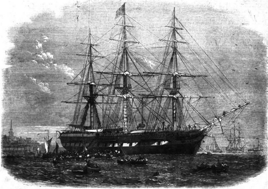 [1] Парусный транспортный корабль «Gertrude». Рисунок из газеты «The Illustrated London News» за 1862 г. В годы Крымской войны парусник был зафрактован британским правительством и использовался для военных перевозок как транспорт №54. На его борту в Крым были доставлены 12 фунтовые осадные пушки.