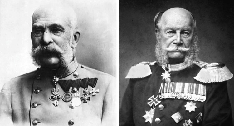 А после того, как в 1866 году Австрия подписала унизительный мир, страна в 1867 году была преобразована в «двойную» Австро-Венгрию. Правителем этого государства был тогда кайзер Франц-Иосиф Габсбург, лицо которого удивительно похоже и на лицо Льва Толстого, и на лицо Вильгельма Первого Гогенцоллерна.