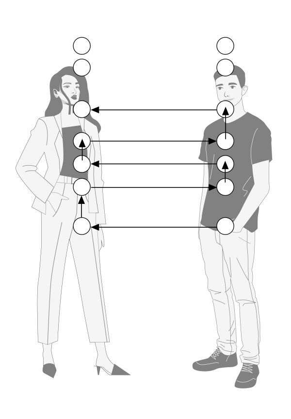 Разбираясь с приведенной ниже «инструкцией» по энергетическому взаимодействию между мужчиной и женщиной, смотрите на схему пересечения мужских и женских энергетических центров, в народе называемых чакрами.