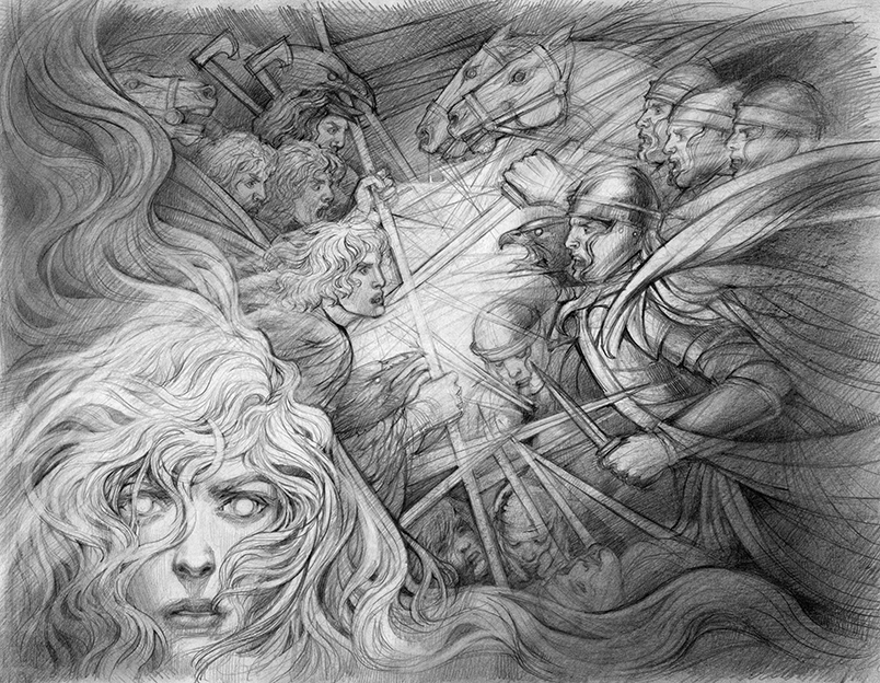 Римляне затрубили в трубы. Бендейгид гортанно заревел; Кинрик осознал, что тоже вопит во все горло. Бритты с воем ринулись вперед. Кинрик ломился сквозь деревья с копьем наперевес и слышал, как наступают римляне, чеканя шаг: грозный топот вторил бриттским боевым кличам.