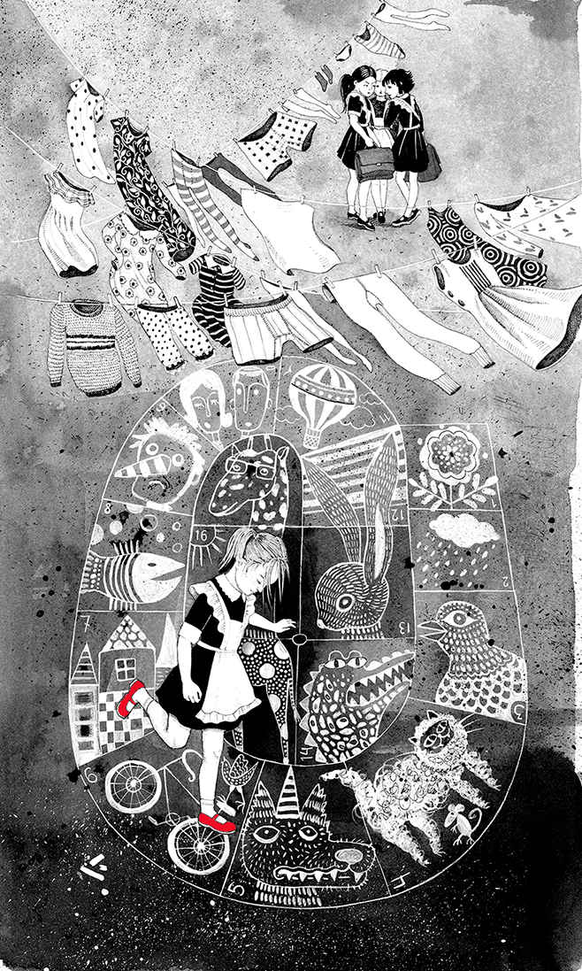 Если есть желание узнать, во что дети играют без взрослых, следует провести в квартире генеральную уборку, чтобы найти следы, которые, подобно окаменелостям в янтаре, хранят в себе картину произошедшего. Например, однажды в ходе уборки в укромных местах можно найти восемь миниатюрных игрушечных унитазов (в одном миниатюрный конь); коробку с крупой и зелеными перьями попугая; грузовик с камнями в обертках от конфет; трусы, залитые шампунем; насмерть приклеенный к стене птичий череп; тайник с двадцатью шекелями, пластиковыми пираньями и колесом от самоката; стакан песка с захороненной в нем головой дроида R2-D2; бурю, накаляканную на стене карандашом.
