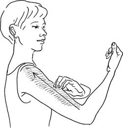 При выполнении массажа предплечья лучезапястный сустав должен располагаться выше локтевого, которым можно опираться на поверхность, например, стола, кровати, или если вы сидите – на собственное бедро. Начинайте с поглаживаний, потом идет растирание. Эти движения следует производить в одну сторону – от периферии к сердцу. Следующий прием – выжимания. Затем захватив мышечную ткань между первым и остальными пальцами, пройдите вдоль оси предплечья сначала со стороны локтевой кости, затем с противоположной (лучевой) – нужно производить разминание, вибрацию, потряхивание, похлопывание (рис. 85).