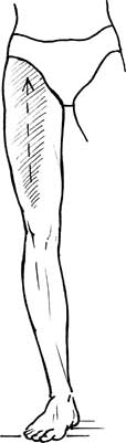 Массаж мышц бедра следует проводить в положении лежа, сидя, а некоторые приемы на передней группе (разгибателях) можно выполнять даже стоя. Движения проводятся от коленного сустава – к тазобедренному.