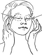 Затем 3 раза проходим пальцами вокруг глаз: по нижнему веку от внешних уголков глаз к переносице, затем по неподвижному верхнему веку в направлении от переносицы к внешним уголкам глаз (рис. 137). После этого – 3 круга вибрации. Затем повторяем легкое поколачивание у внешних уголков глаз. Завершаем обработку 3–4 прижимающими движениями подушечками пальцев у внешних уголков глаз.