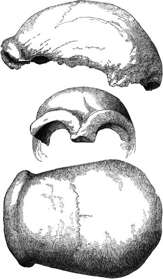 Рисунок первого найденного черепа неандертальца. Из книги Томаса Гексли «Место человека в природе».
