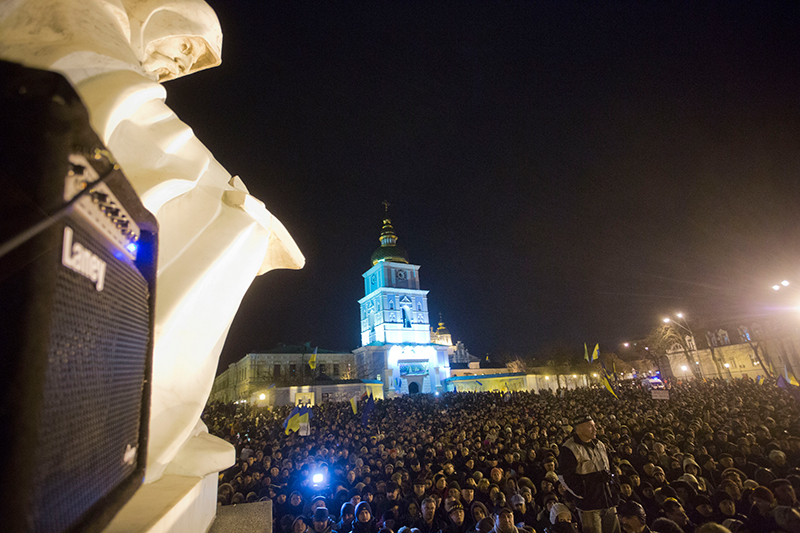 Потом начался большой вечерний митинг: Тягнибок, Яценюк и Кличко вернулись из Вильнюса и, взявшись за руки, объявили, что теперь требуют отставки Януковича. Троица предложила всем разойтись, а в воскресенье собраться на большое вече. Около полуночи круглосуточный митинг-концерт остановили впервые за десять дней. Я пошел в свою комнатку собирать фоторепортаж и разочарованно озаглавил его «Кульминация Евромайдана». Казалось, что протест сходит на нет.