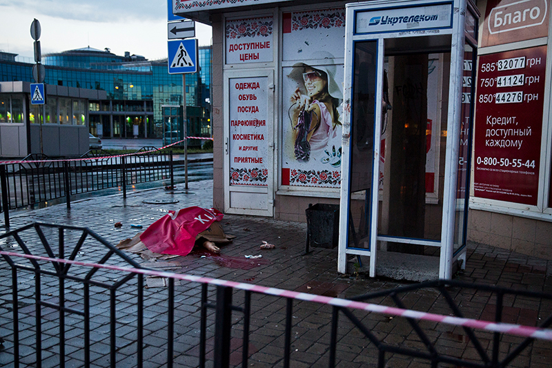 С каждым днем ситуация становилась все более страшной. В реке нашли тело местного депутата, которого похитили и пытали сепаратисты; пять человек погибли при нападении отряда «Правого сектора» на один из блокпостов; боевики с георгиевскими лентами взяли в заложники журналиста Vice News и угрожали ему расстрелом. Российское государство всеми силами раскручивало эту спираль: пропагандисты называли Стрелкова и его людей местными жителями, и Путин грозил «последствиями» за насилие против них.