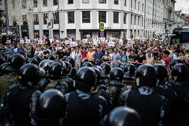 Хотя эскалация насилия была виной властей, Кремль и мэрия использовали ее как повод для нового витка репрессий. Чтобы запугать горожан, пропаганде надо было выставить несогласных экстремистами. Симоньян выдумывала, что «митингующие пробивали себе путь к мэрии взрывпакетами»; телеграм-каналы публиковали неправдоподобное видео, на котором задержанный выкладывал из карманов молоток и ножи; телевизор врал про невероятное терпение силовиков и летевшие в них куски асфальта, а Собянин про якобы звучавшие призывы штурмовать мэрию.