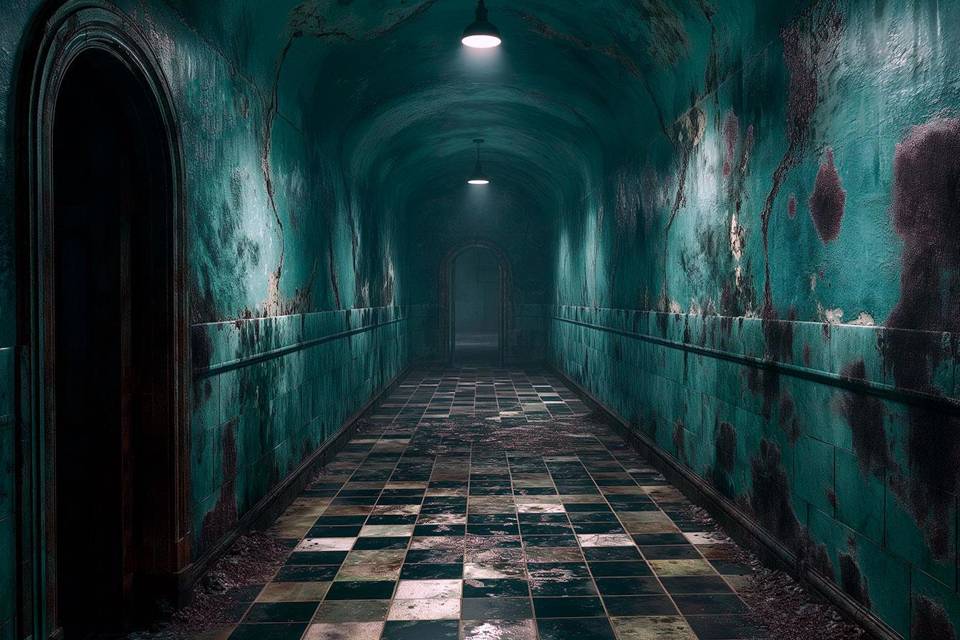Коридор, а, скорее всего, и вся больница, выглядел мрачным. Стены, предположительно, бывшие белыми в момент открытия больницы, позеленели. Бледно-зелёный свет, трещины на штукатурке — всё выглядело так, будто самым больным в здании, было само здание. Плюс следы крови на полу и стенах. Не просто пятна от свежих брызг, а уже какая-то новая форма жизни в виде кровавой плесени. Будто поливали не один раз и делали это не один раз, совершенно забыв про уборку.