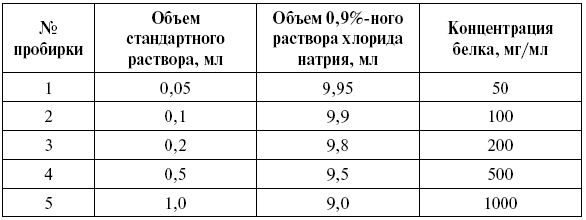 Прямолинейная зависимость калибровочного графика сохраняется до концентрации белка 1000 мг/мл. В экссудатах содержится от 30 до 80 г/л белка, тогда как в транссудатах – 5–25 г/л.