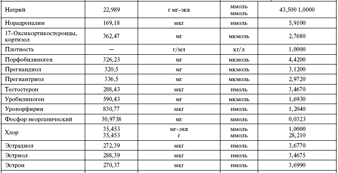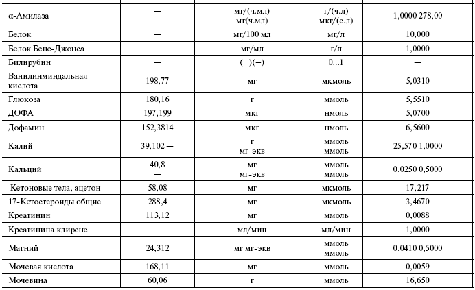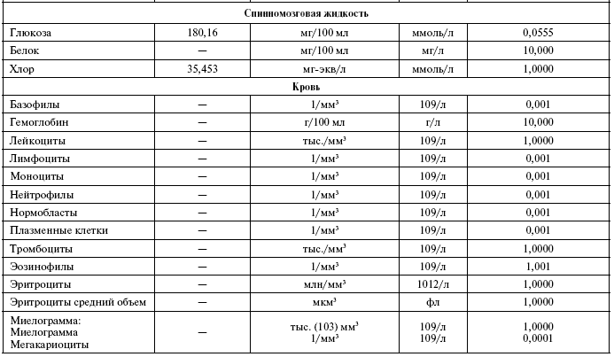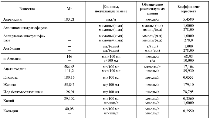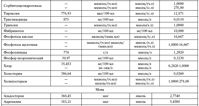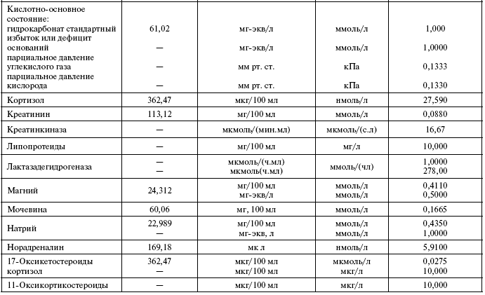 Таблица пересчета единиц, подлежащих замене, применяемых в лабораторной диагностике (Л. А. Данилова)