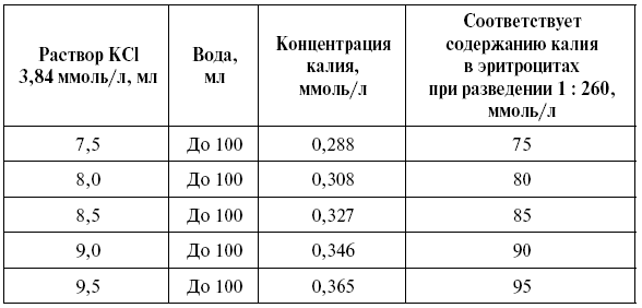 Эритроциты отделяют центрифугированием, гемолизируют водой и определяют содержание электролитов методом фотометрии пламени. В связи с тем что между эритроцитами всегда остается некоторое количество плазмы, большое значение имеет единообразие режимов центрифугирования; приведенный ниже режим рекомендован в качестве унифицированного.