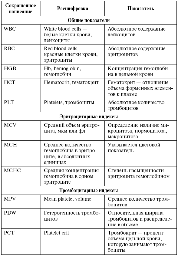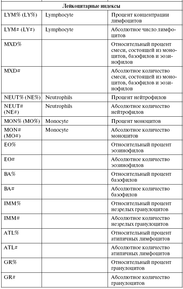 Обозначение основных показателей крови в современных гематологических анализаторах