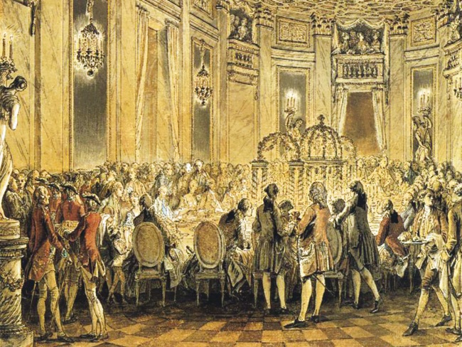 Ж.-М. Моро-младший «Праздник, устроенный в Лувесьене 2 сентября 1771 года» (овальный салон музыкального павильона)