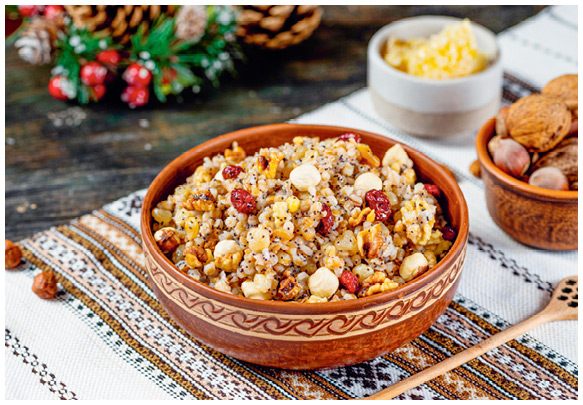 В сочельник на стол обязательно ставили постное сочиво. Выбор злаков и добавок зависел от вкуса хозяев, их финансовых возможностей и региона. Примерный рецепт выглядит так: высыпать стакан пшеничных зерен в чугунок, залить тремя стаканами воды, чуть-чуть посолить, накрыть крышкой и отправить в духовку на два-три часа. Пшеница разварится, зерна станут мягкими, могут даже полопаться. Затем чугунок надо вынуть из духовки и дать пшенице остыть. Из горшочка зерна выкладывать не надо: они могут подсохнуть, а сочиво должно быть мягким. Затем можно смешать пшеницу с любыми сухофруктами, орехами, полить медом, разведенным водой в пропорции один к одному. Есть рецепты сочива из риса, когда в хорошо проваренный рис добавляли толченый миндаль и изюм.