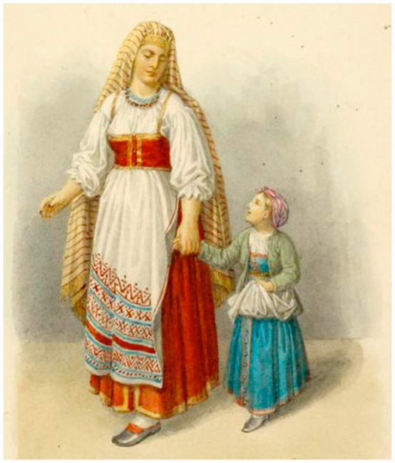 Федор Солнцев. Женщина Вологодской губернии. 1820–1869. Альбом иллюстраций «Одежды Русского государства» / The New York Public Library Digital Collection